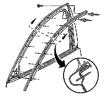 3. Loosen the front door frame applique screws. Refer to Door Frame Applique Replacement - Front (Impala) Door Frame Applique Replacement - Front (Monte Carlo).
