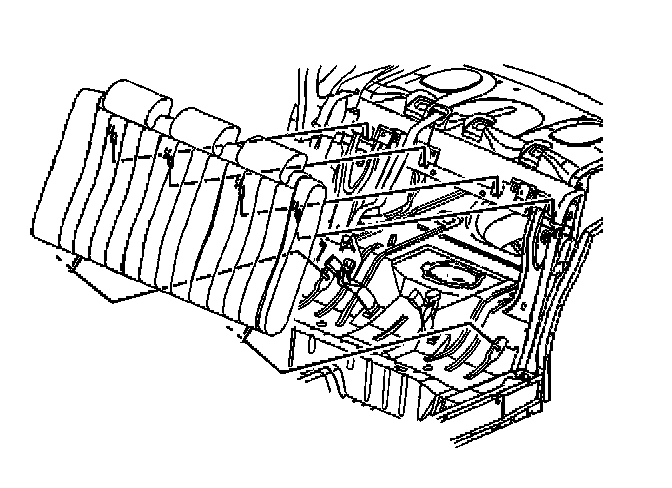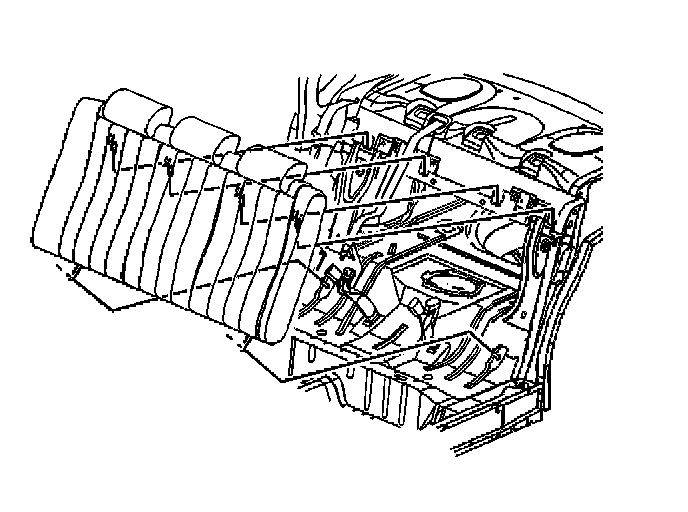 2. Remove the rear seat back nuts from the child seat latch bracket.