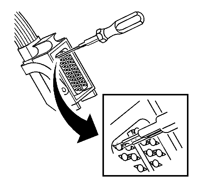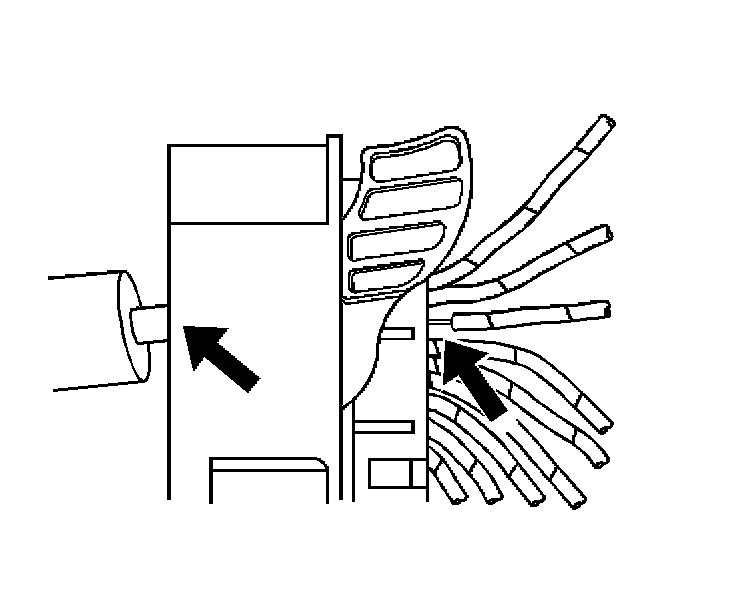 7. Insert the J 44020-4 (GM P/N 15314260) tool into the 2 triangular cavities on each side of the terminal at the front of the connector.