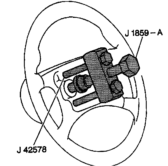 9. Remove J 1859-A and J 42578 from the steering wheel.