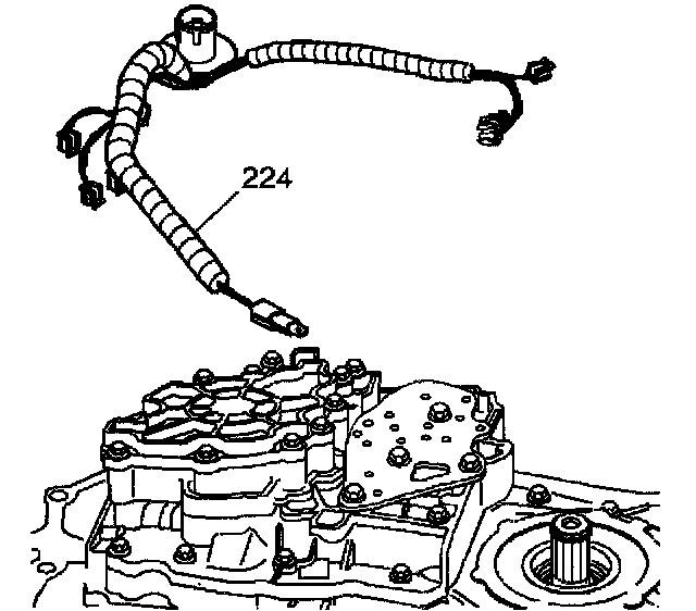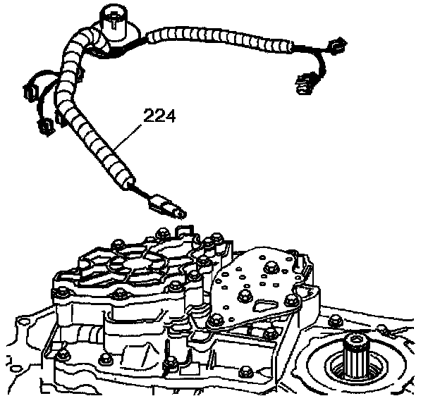 2. Install the wiring harness to the solenoid valve (315A, 315B, 322, 334 and/or 440), TFP manual valve position switch (395) and the temperature sensor (391).