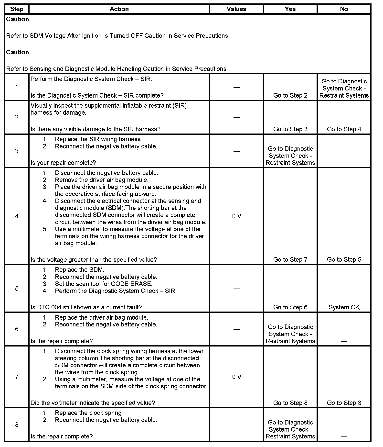 The test ignition and deployment loop voltages are measured to ensure that they are within their normal voltage ranges. The SDM monitors the voltages at the driver low and the passenger low to detect shorts to ground or voltage in the deploy loops.