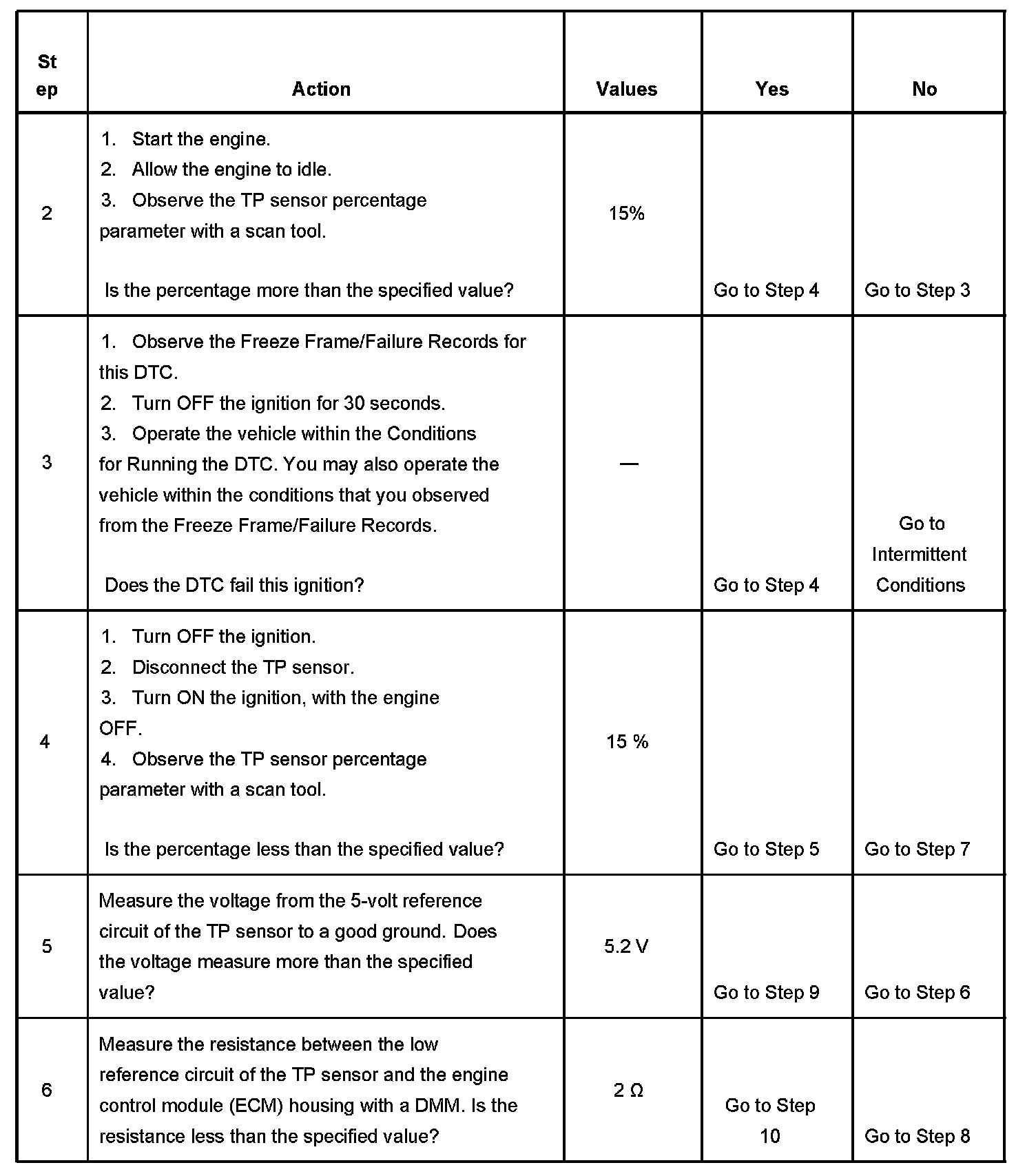 IMPORTANT: The scan tool displays a voltage near 0.0 volts. Do not use the scan tool voltage parameter to determine if there is a TP sensor condition.