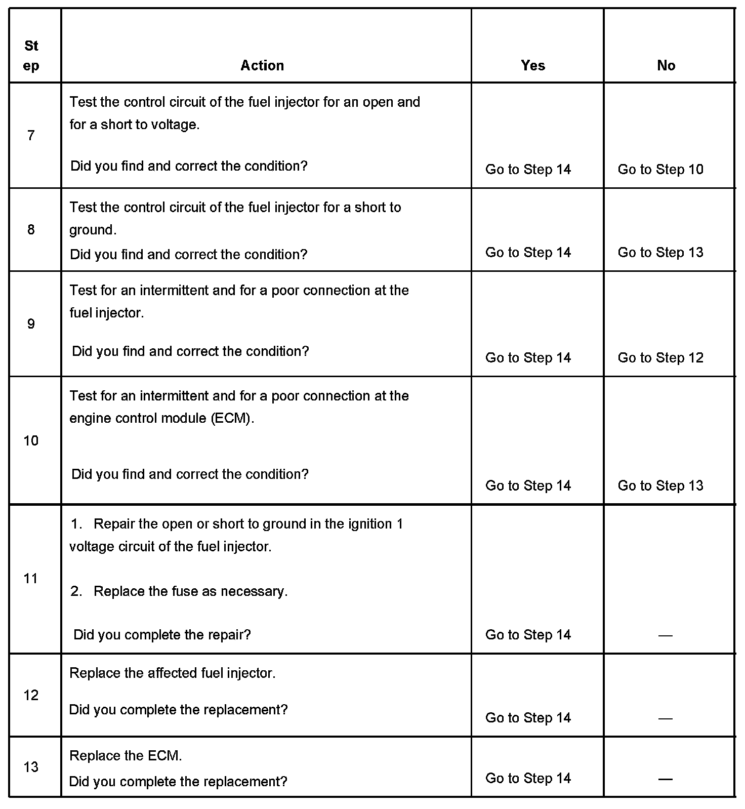 - The control module detects an incorrect voltage on the fuel injector control circuit.