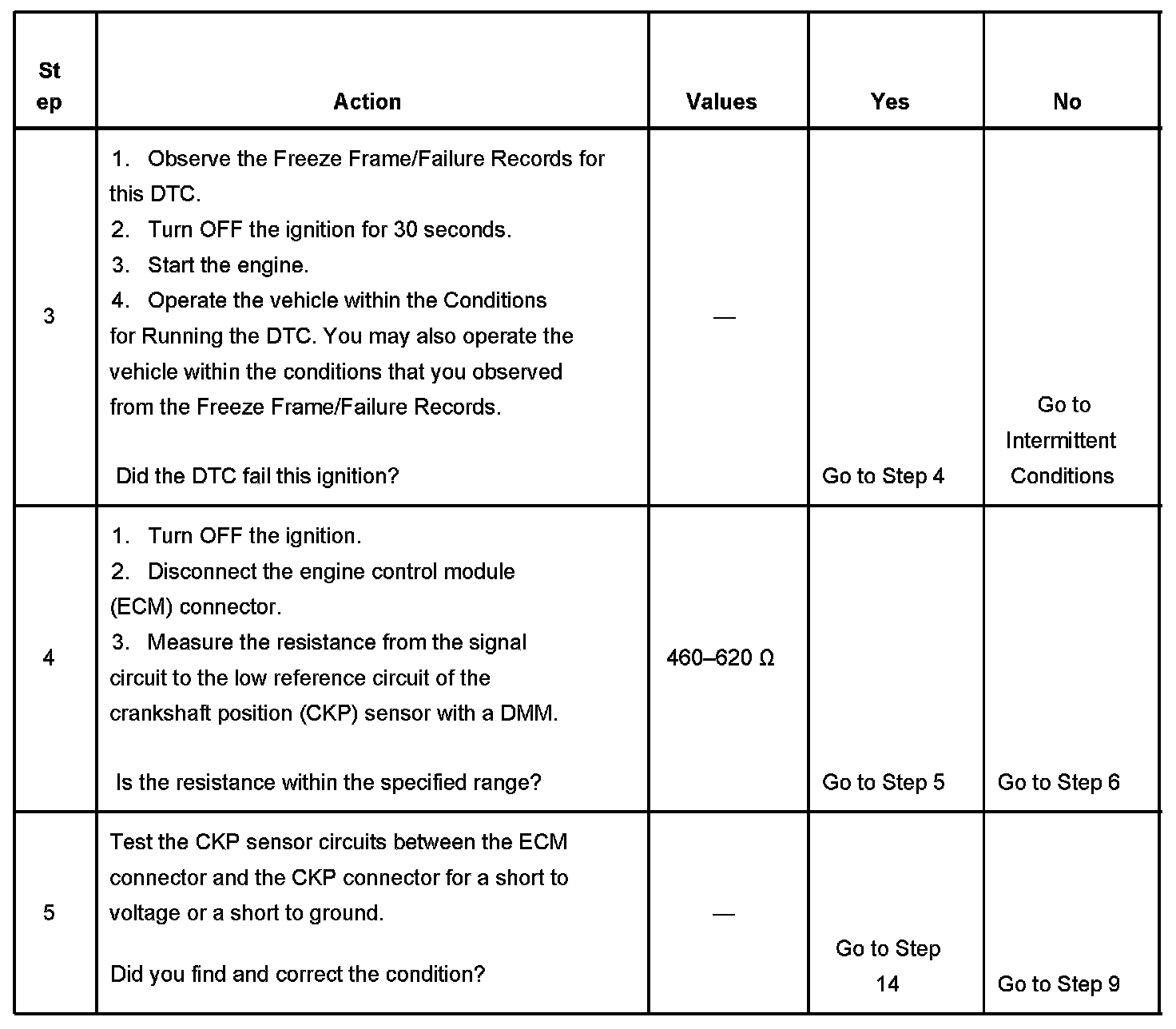 If the ECM detects no pulses from the CKP sensor, DTC P0337 sets.