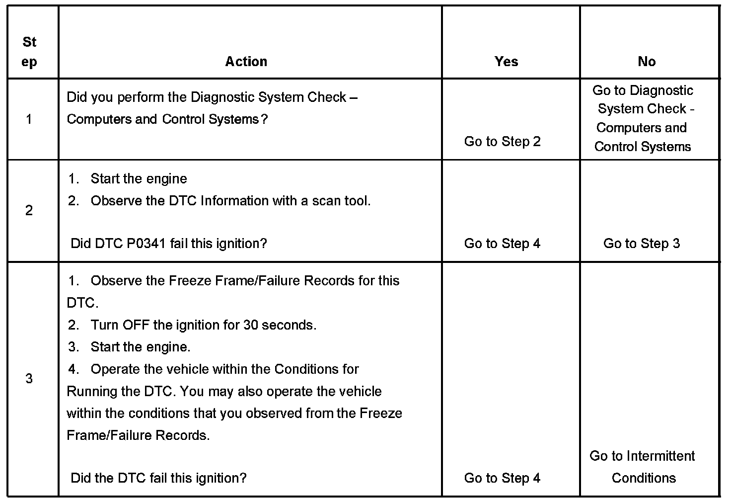 If the ECM detects that a minimum number of CMP re-syncs has not occurred, the ECM fuels the engine by using the alternating synchronous double fire (ASDF) method and DTC P0341 sets.