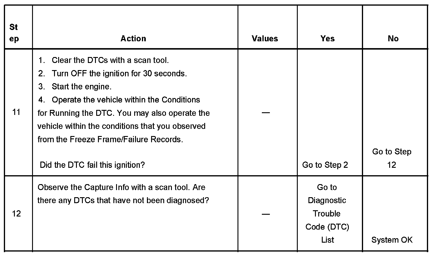 - A current DTC, Last Test Failed, clears when the diagnostic runs and passes.
