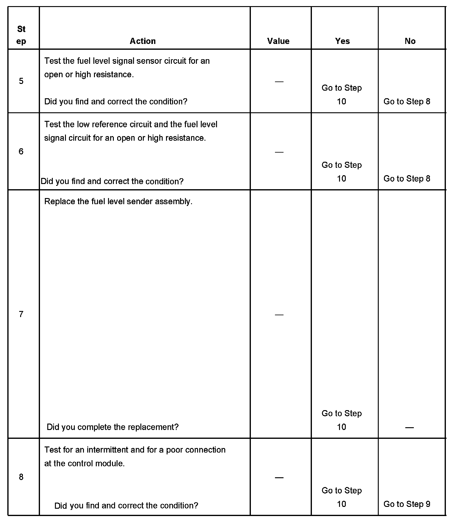3. This step determines if the fuel level sensor signal and ground circuits are OK.