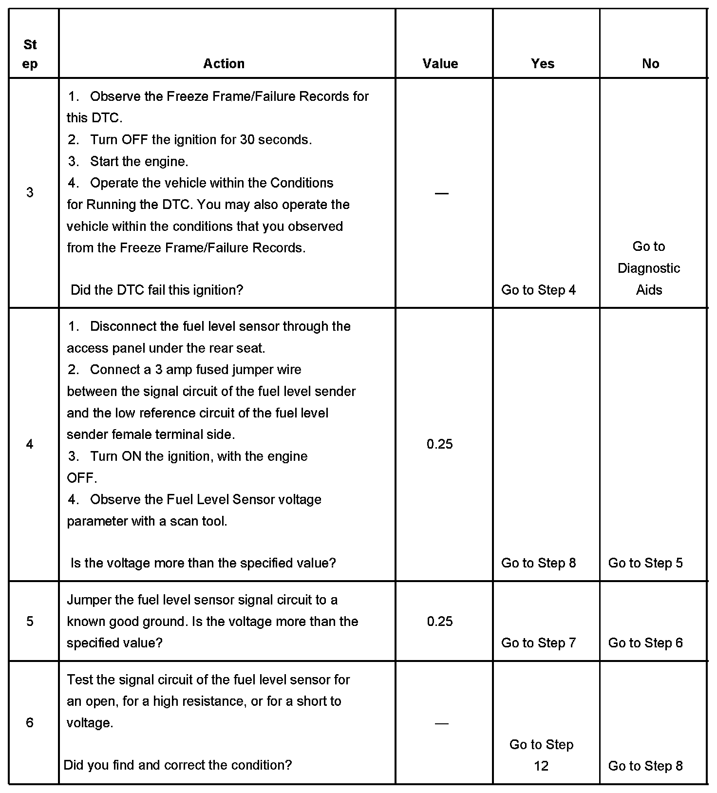 - The fuel level signal voltage is more than 4.25 volts.