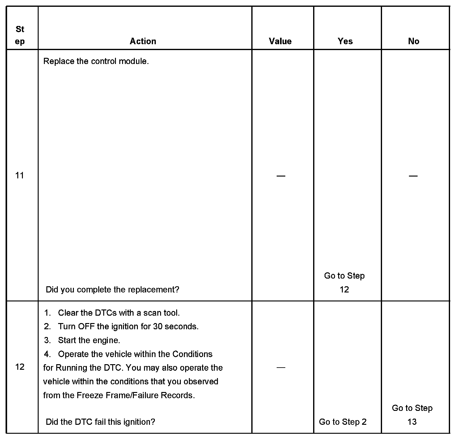 - A current DTC, Last Test Failed, clears when the diagnostic runs and passes.