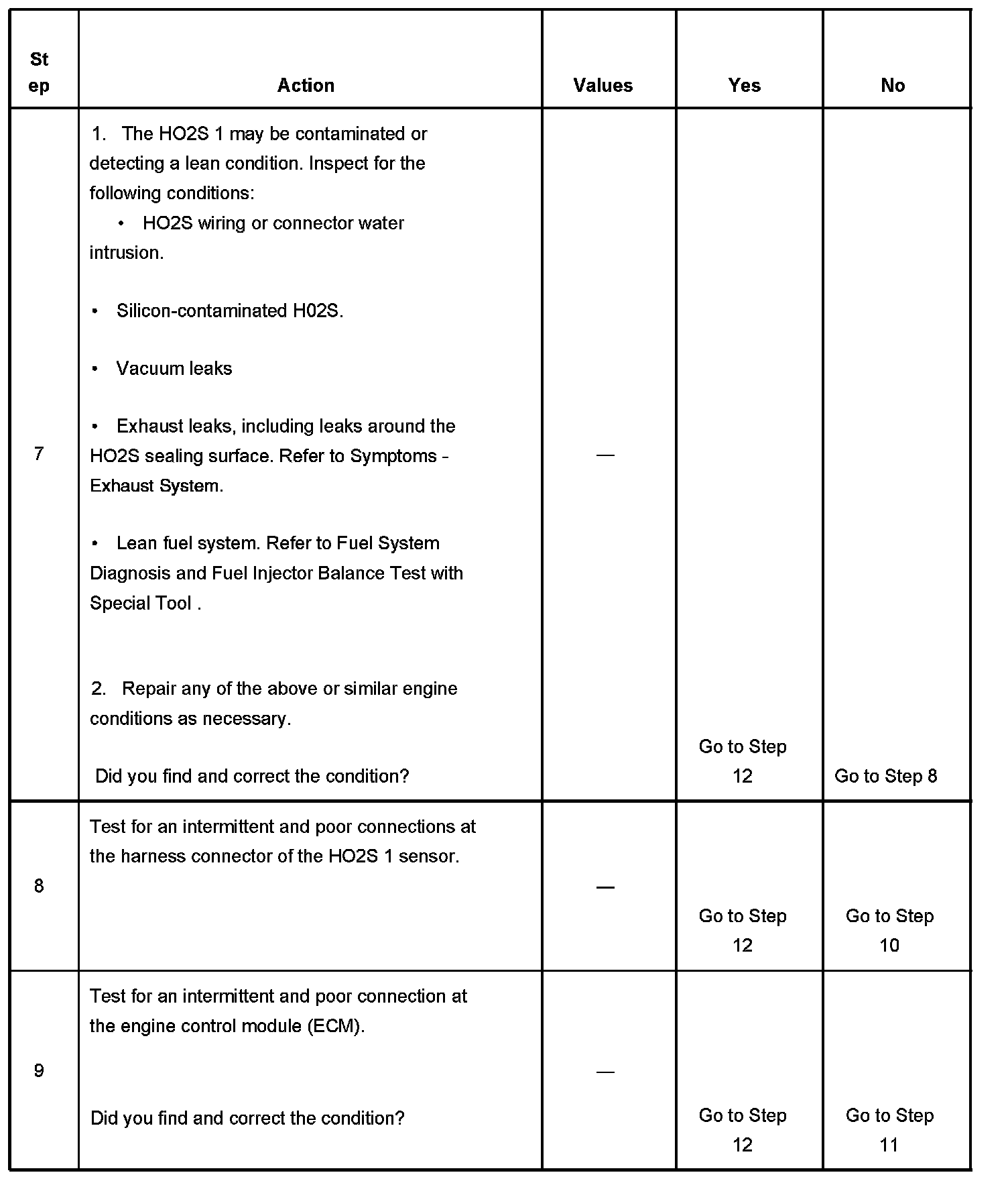 - DTCs P0106, P0107, P0108, P0117, P0118, P0122, P0123, P0171, P0172, P0201-P0204, P0300, P0336, P0337, P0351, P0352, P0401, P0402, P0404, P0405, P0406, P0441, P0443, P0488, P0502, P0506, and P0507 are not set.