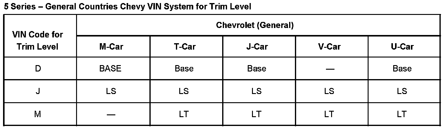 5 SERIES - GENERAL COUNTRIES CHEVY VIN SYSTEM FOR TRIM LEVEL