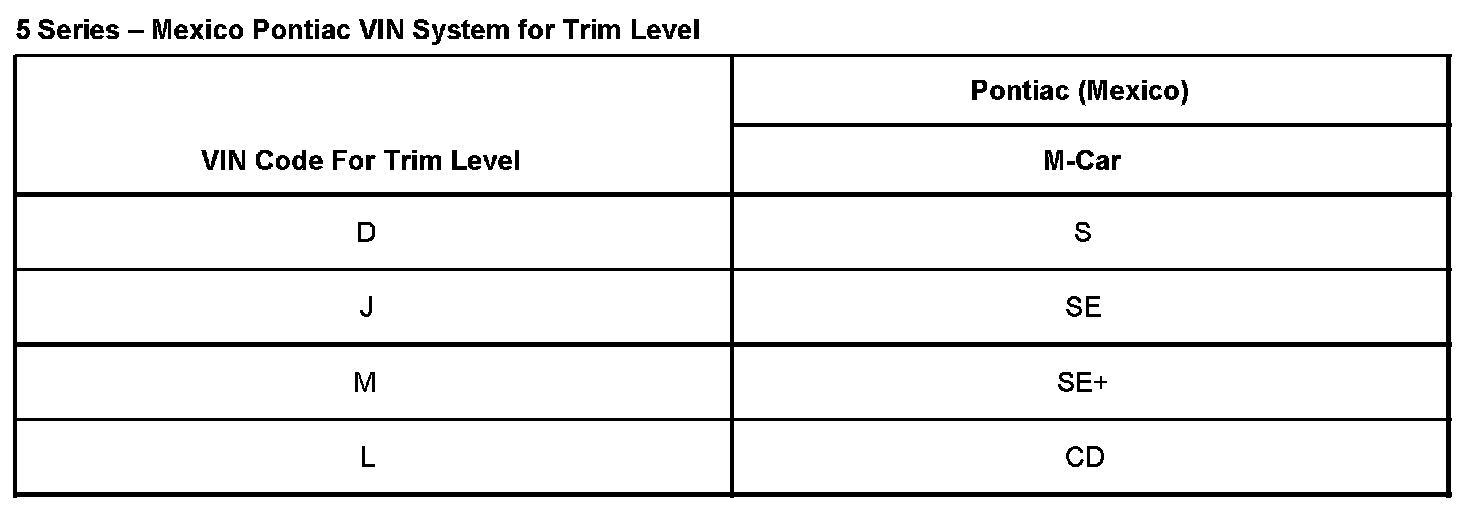5 SERIES - MEXICO PONTIAC VIN SYSTEM FOR TRIM LEVEL