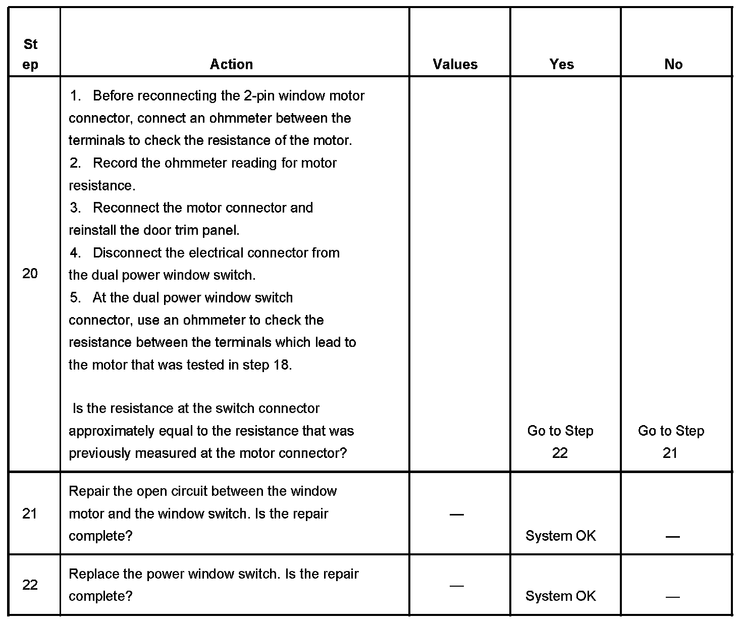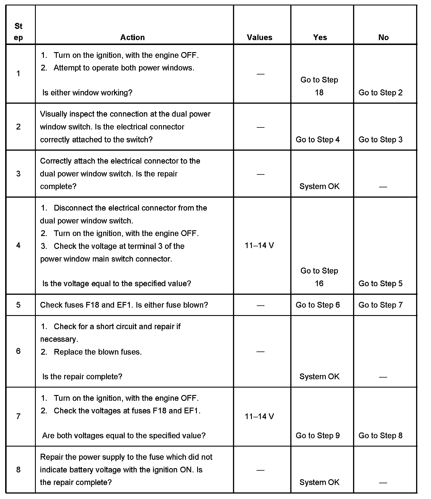 IMPORTANT: These tables are for vehicles equipped with front power windows only.