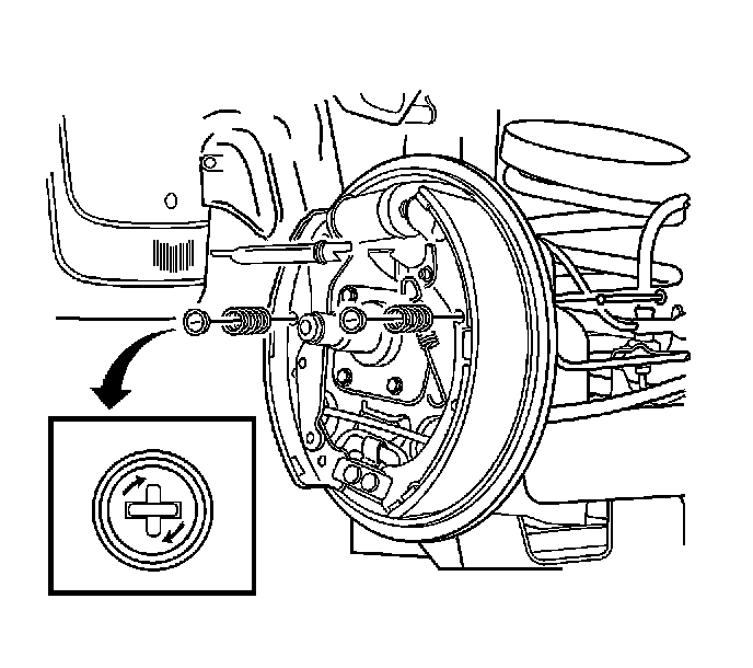1. Install the new parking brake cable through the brake backing plate. Use a new cable if the original is frayed or damaged. Attach the cable to the parking brake shoe lever.