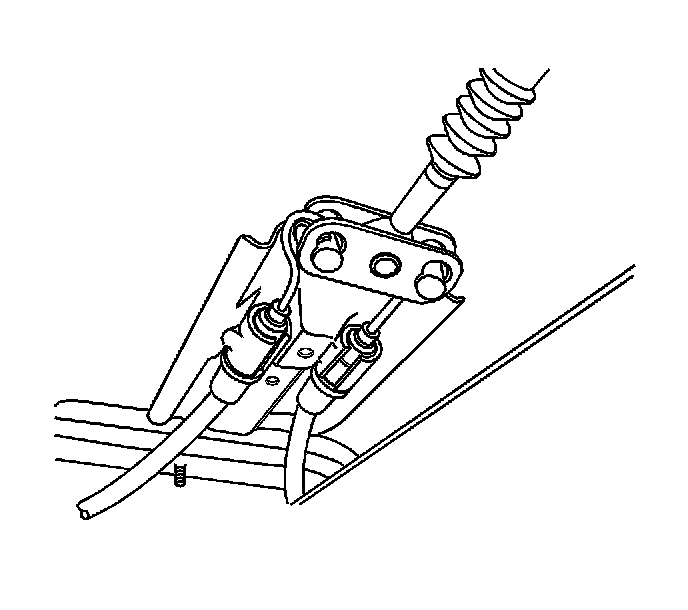 9. Remove the parking brake cables from the welded body bracket.