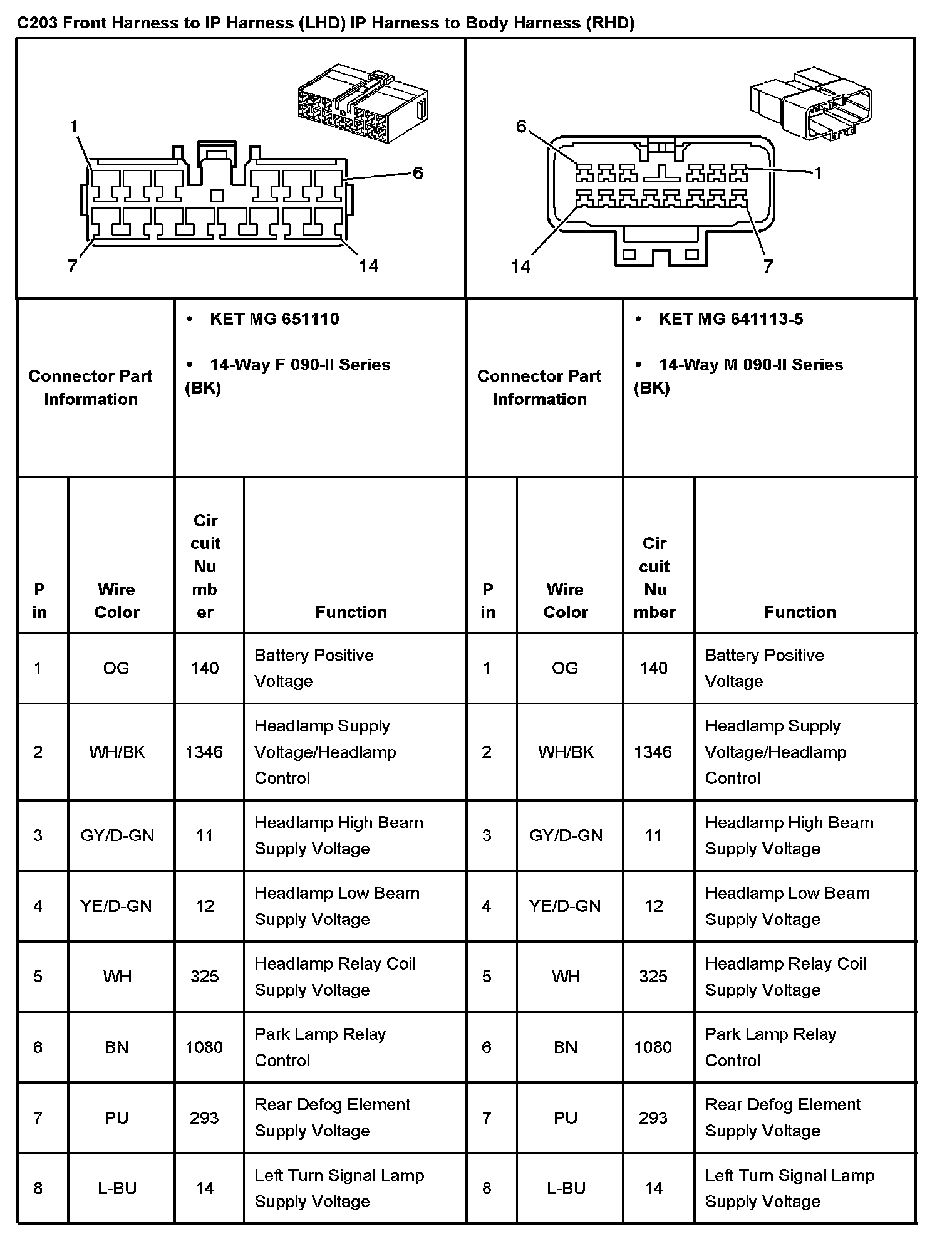 C203 Front Harness To IP Harness (LHD) IP Harness To Body Harness (RHD) Part 1: