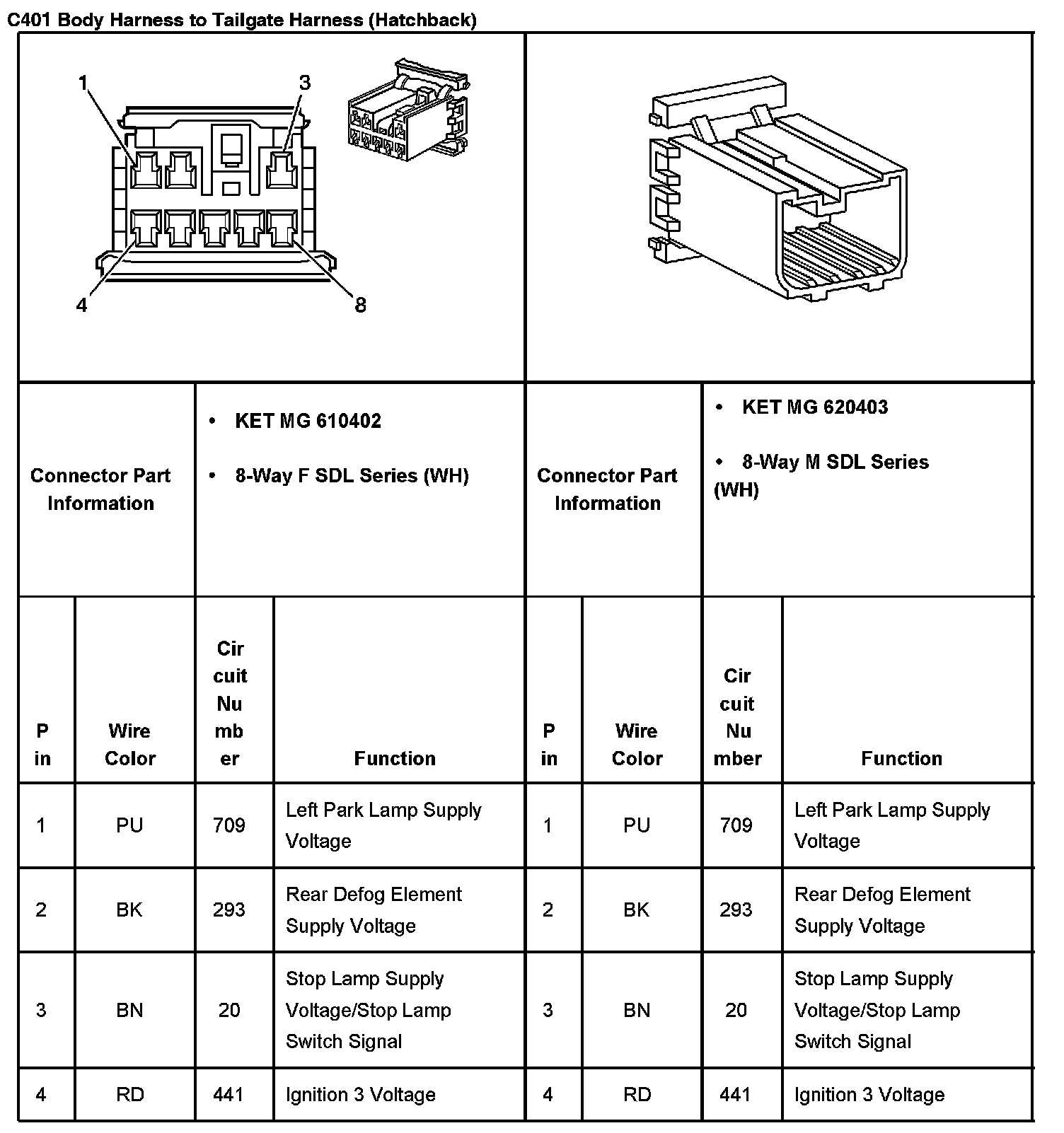 C401 Body Harness To Tailgate Harness (Hatchback) Part 1: