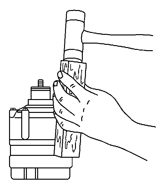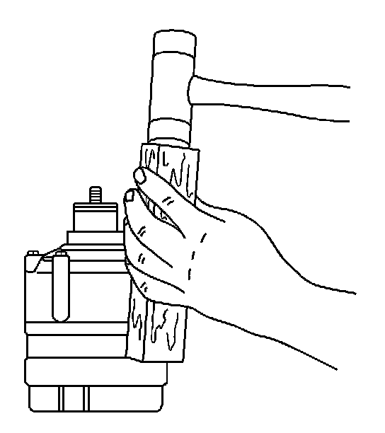 9. Using a wooden block and a plastic-headed hammer, tap the compressor housing at the mounting locations to disengage the housing from the compressor cylinder.