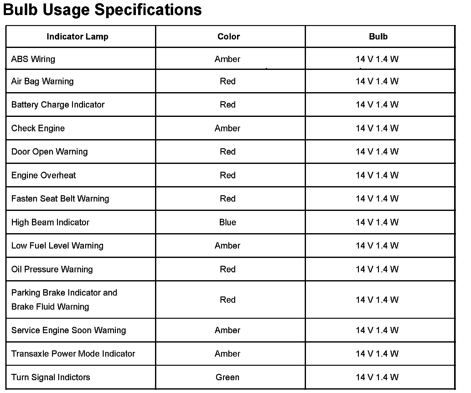 Bulb Usage Specifications: