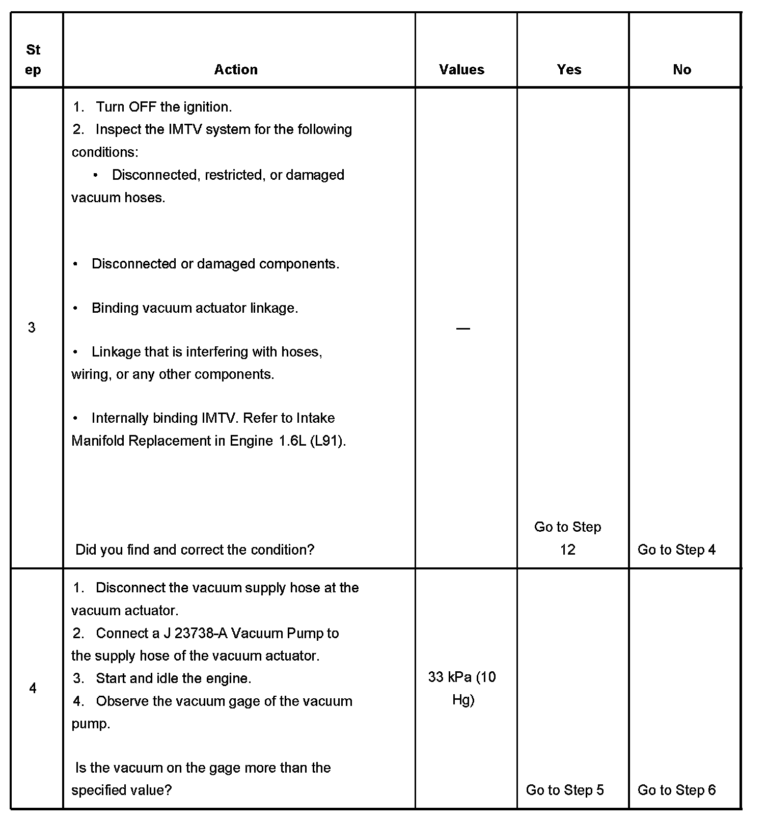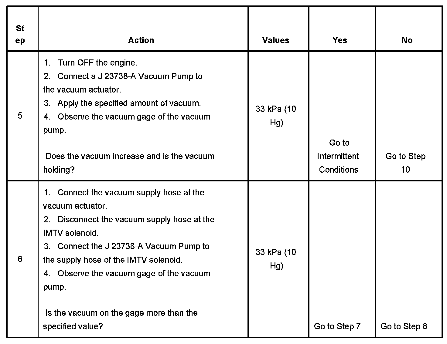 7. This step test for a faulty IMTV solenoid. If the IMTV solenoid is commanded On, there should be vacuum at the vacuum actuator. If the IMTV solenoid is commanded OFF, there should be no vacuum at the vacuum actuator.