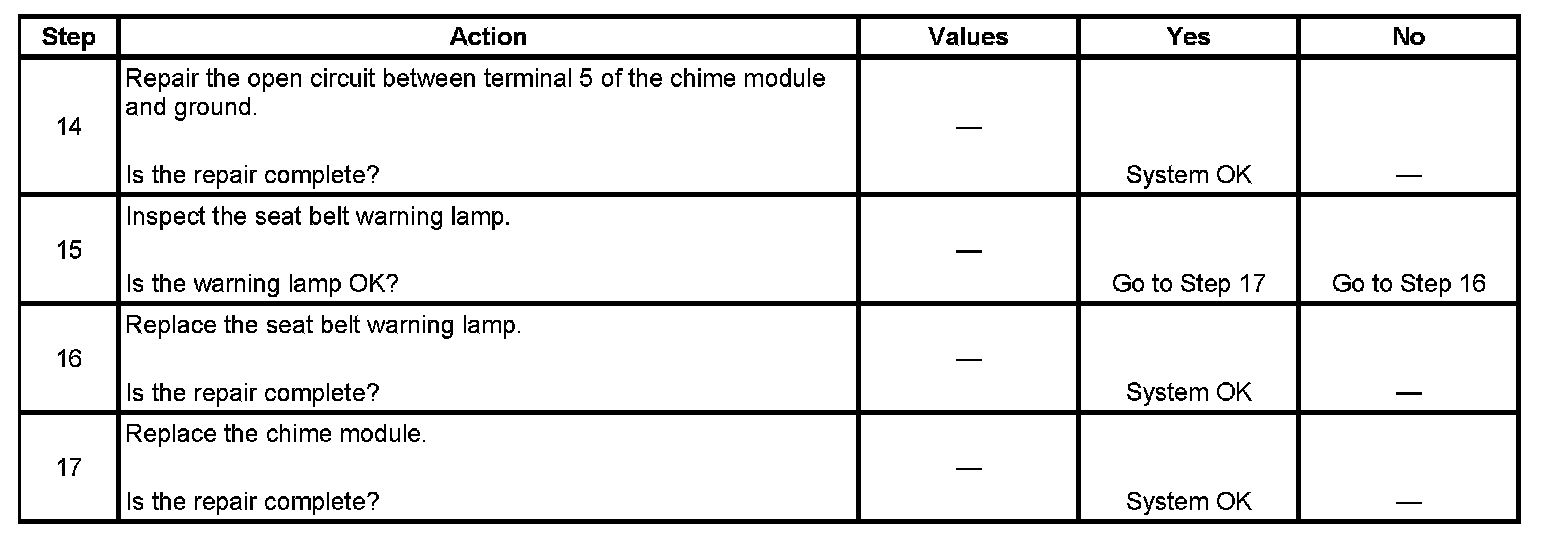 SEAT BELT INDICATOR CIRCUIT MALFUNCTION