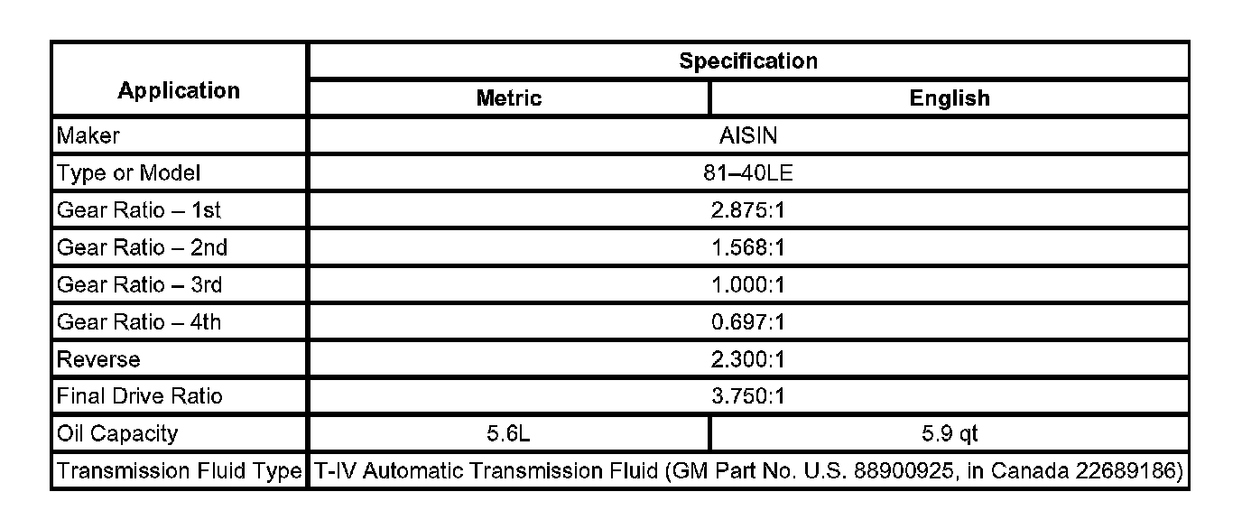 Transmission General Specifications