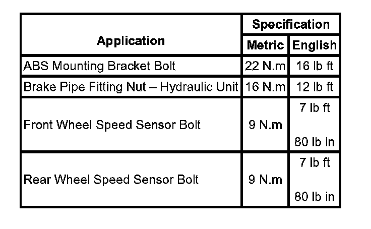Fastener Tightening Specifications