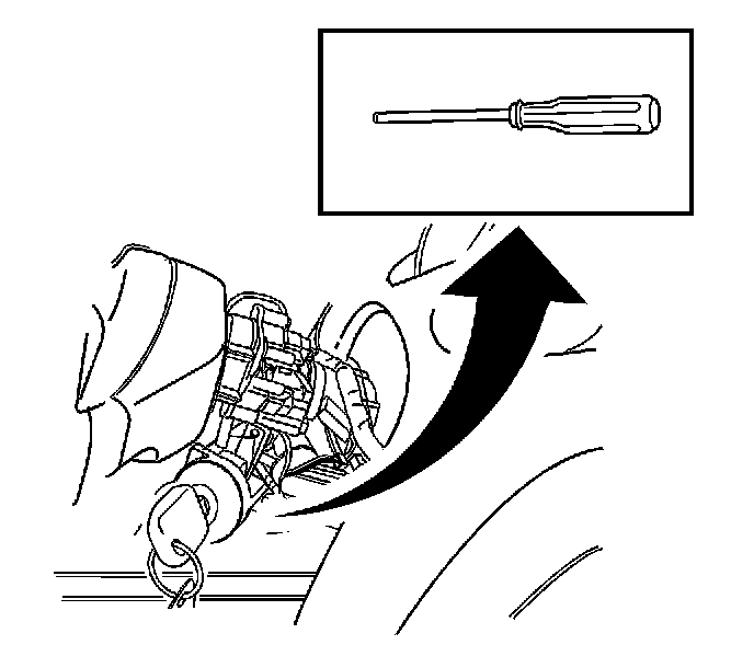 3. With the key in the ignition, turn to ACC and remove the lock cylinder. To remove the lock cylinder of the switch cylinder housing, press down the detent spring with a 2.5 Allen wrench, or other suitable tool, and pull out the lock cylinder.
