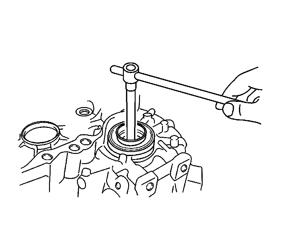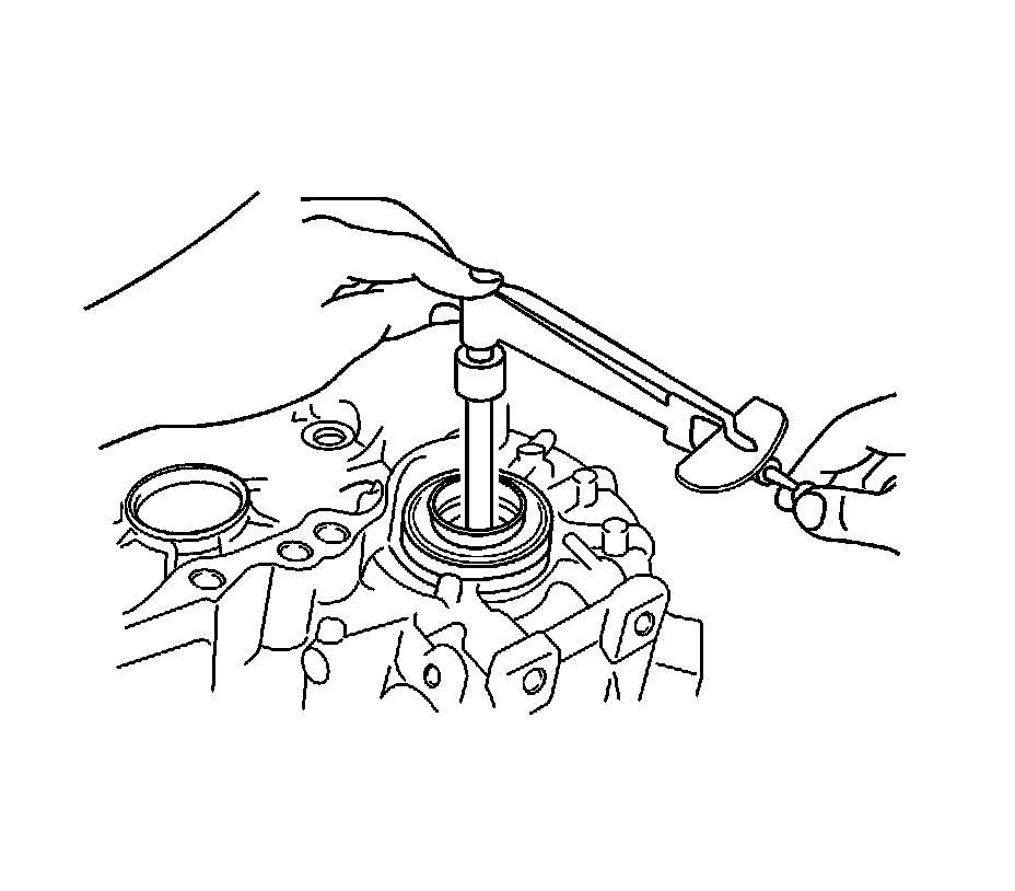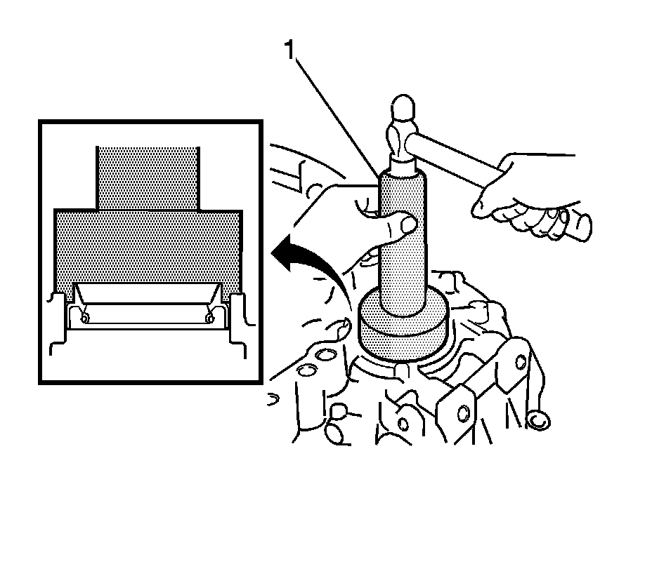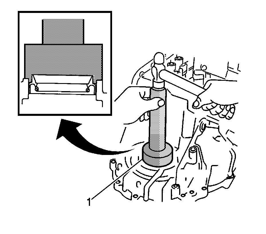 29. Using the DT 46471 (1) and a hammer, drive in a new transaxle housing oil seal.
