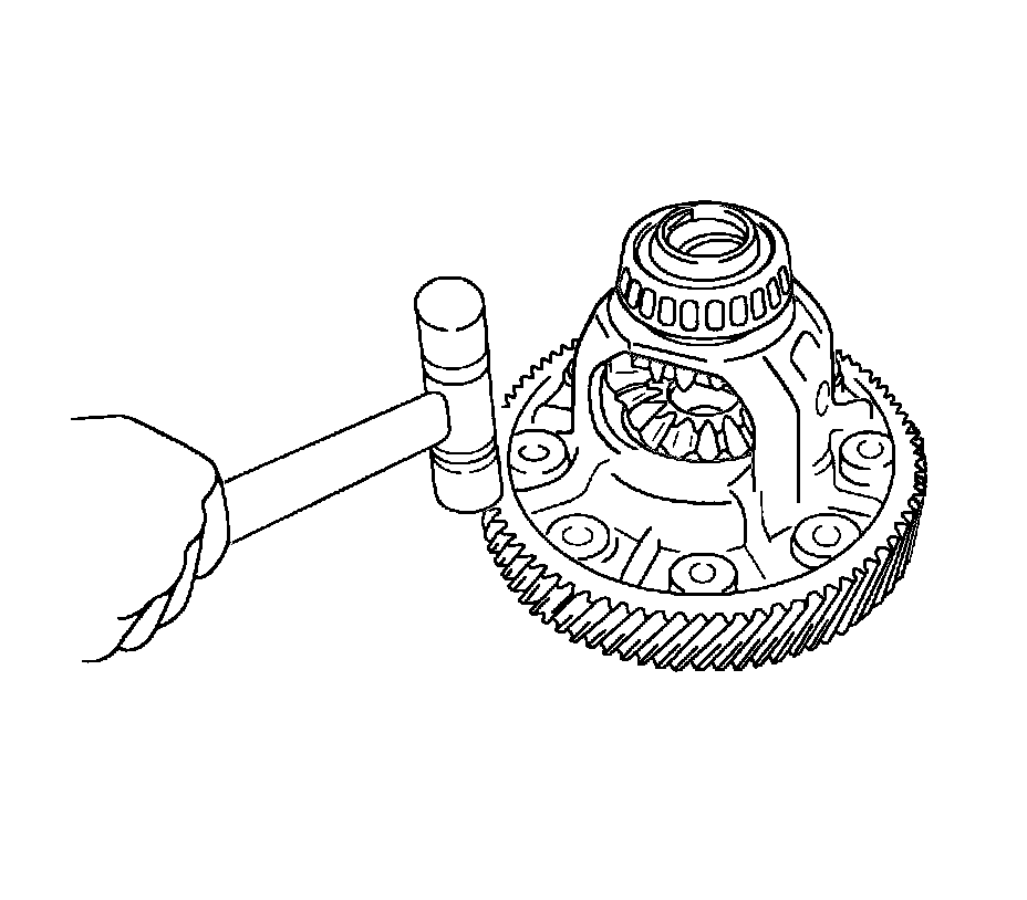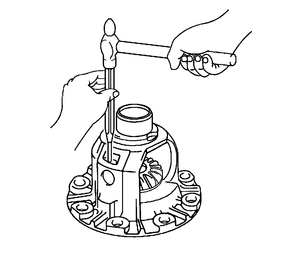 6. Using a pin punch and hammer, drive out the pin from the ring gear side.