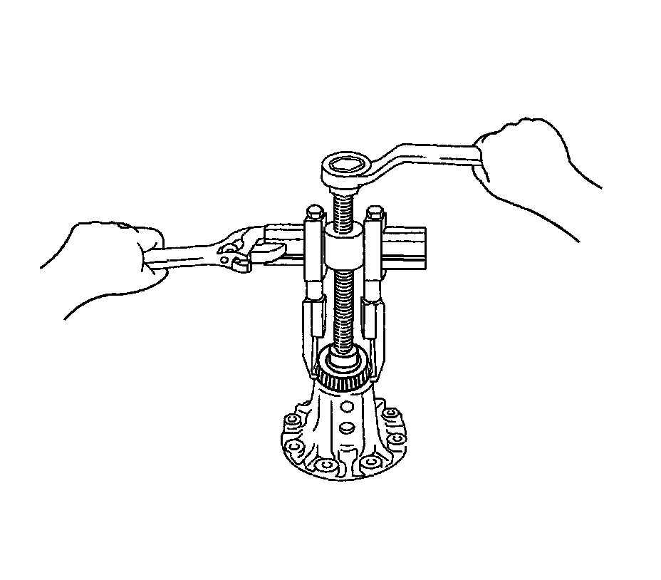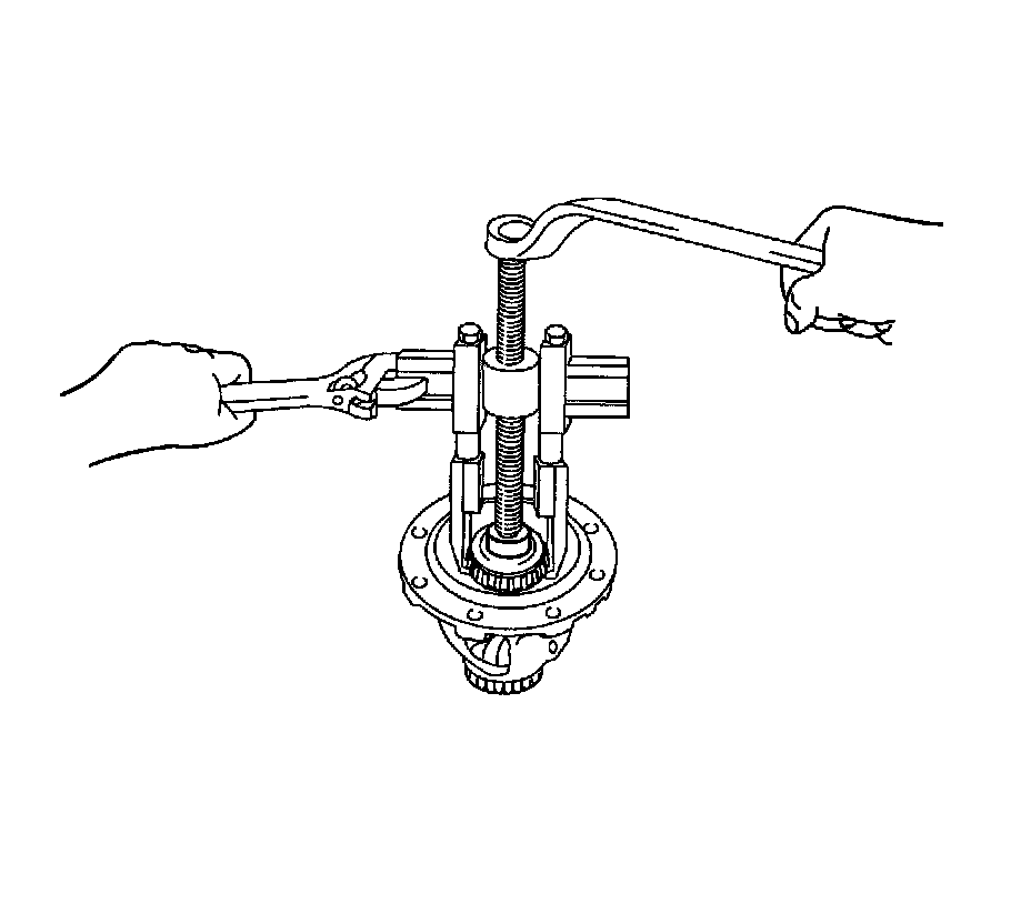 10. Using a suitable puller, remove the side bearing outer race of transaxle housing.
