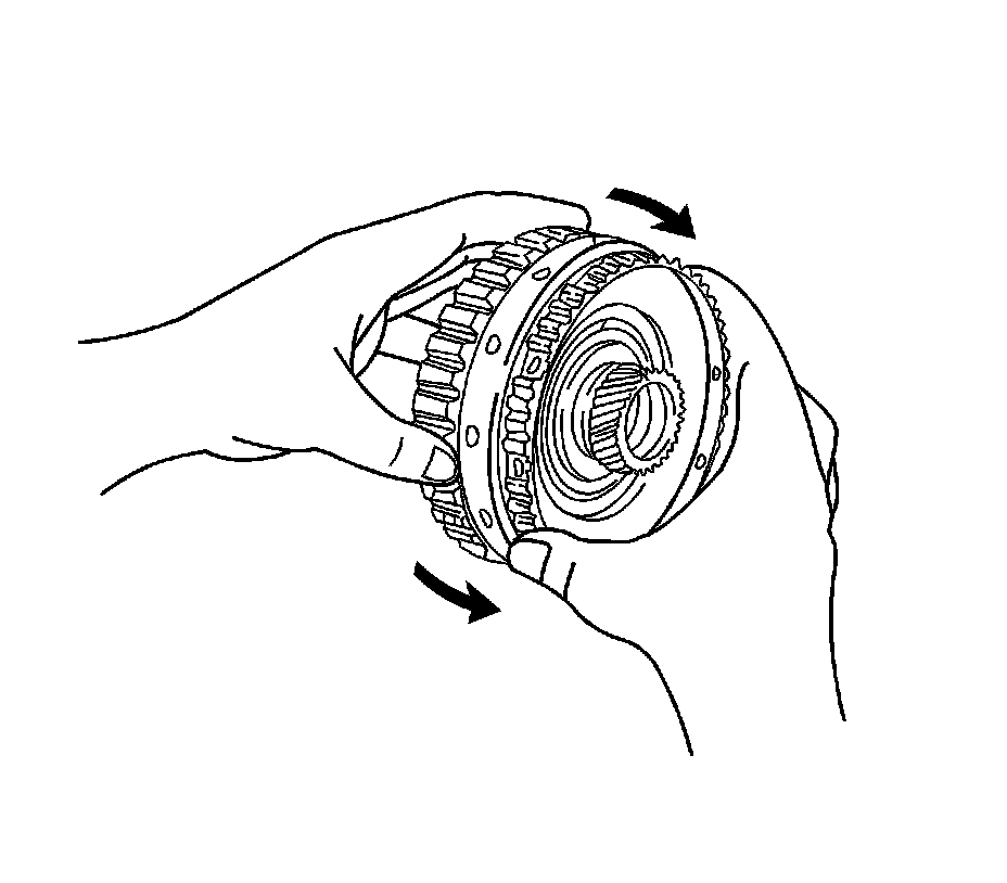 2. Hold the rear planetary sun gear and turn the one-way clutch. The one-way clutch should turn freely clockwise and should lock counterclockwise.