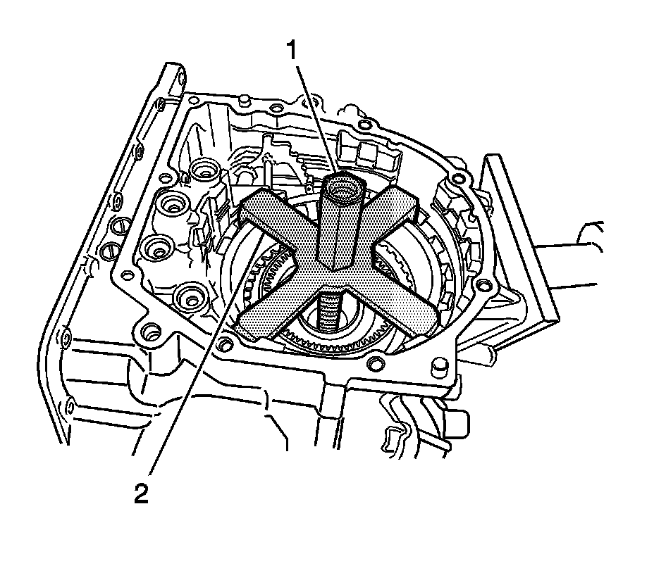 58. Using the DT 46455 (1) and DT 46458 (2), remove the 2 snap rings, 2nd brake piston, and 2nd brake piston return spring.