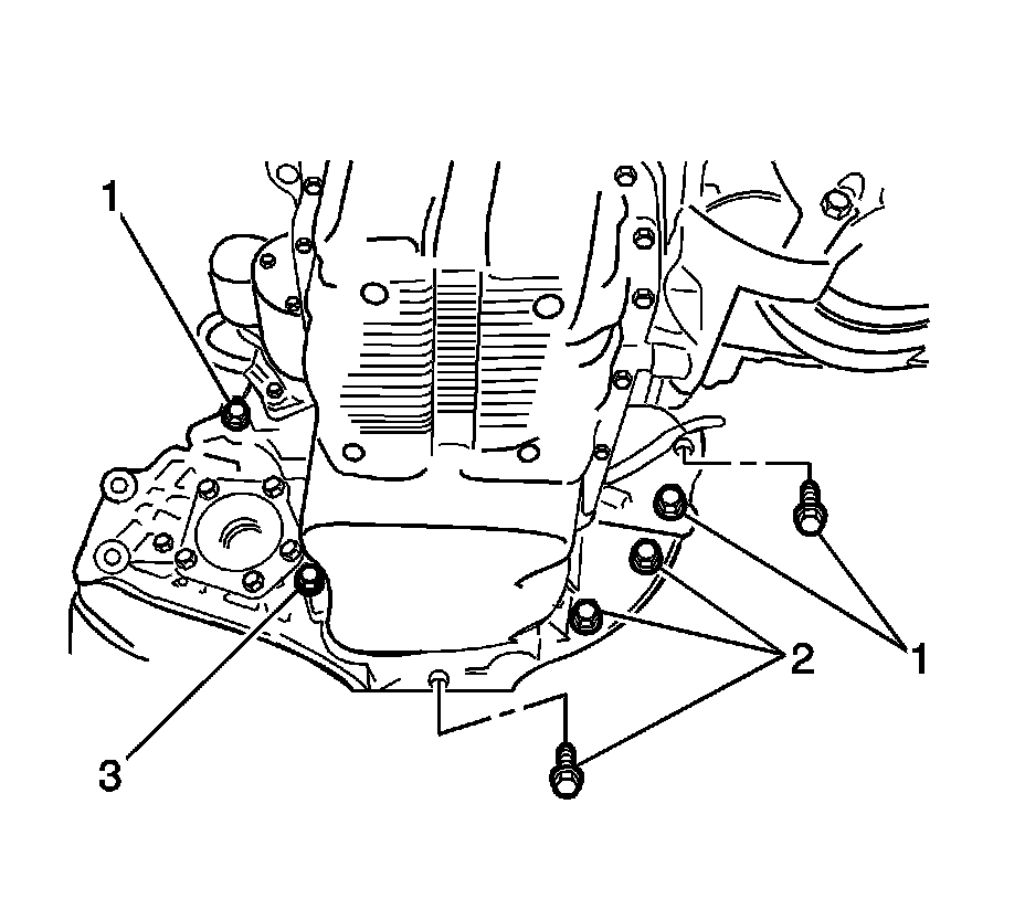 14. Remove the rear mounting bracket bolts and rear mounting bracket.