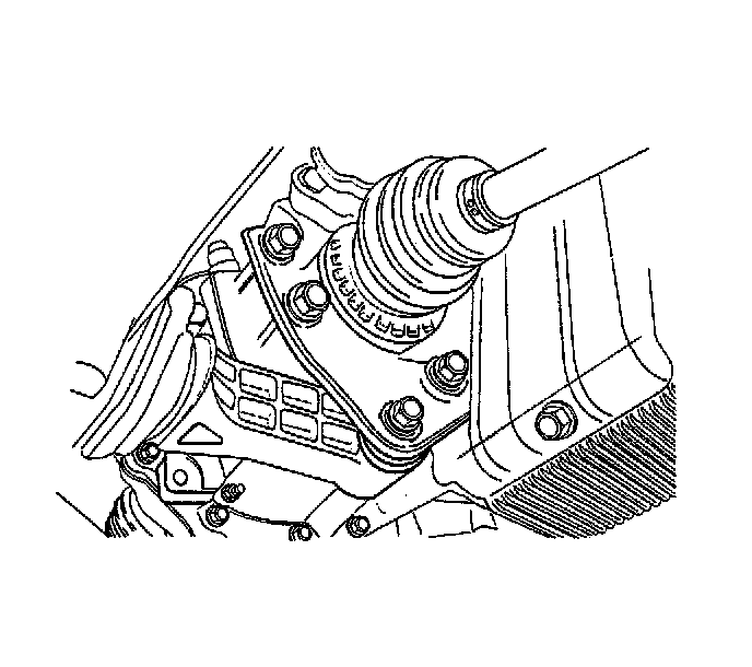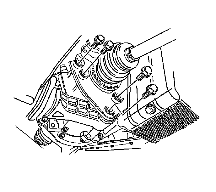 Important: Place a drain pan below the transaxle to catch the escaping fluid. Cap the transaxle drive opening after the drive axle has been removed to keep the fluid in and any contamination out.