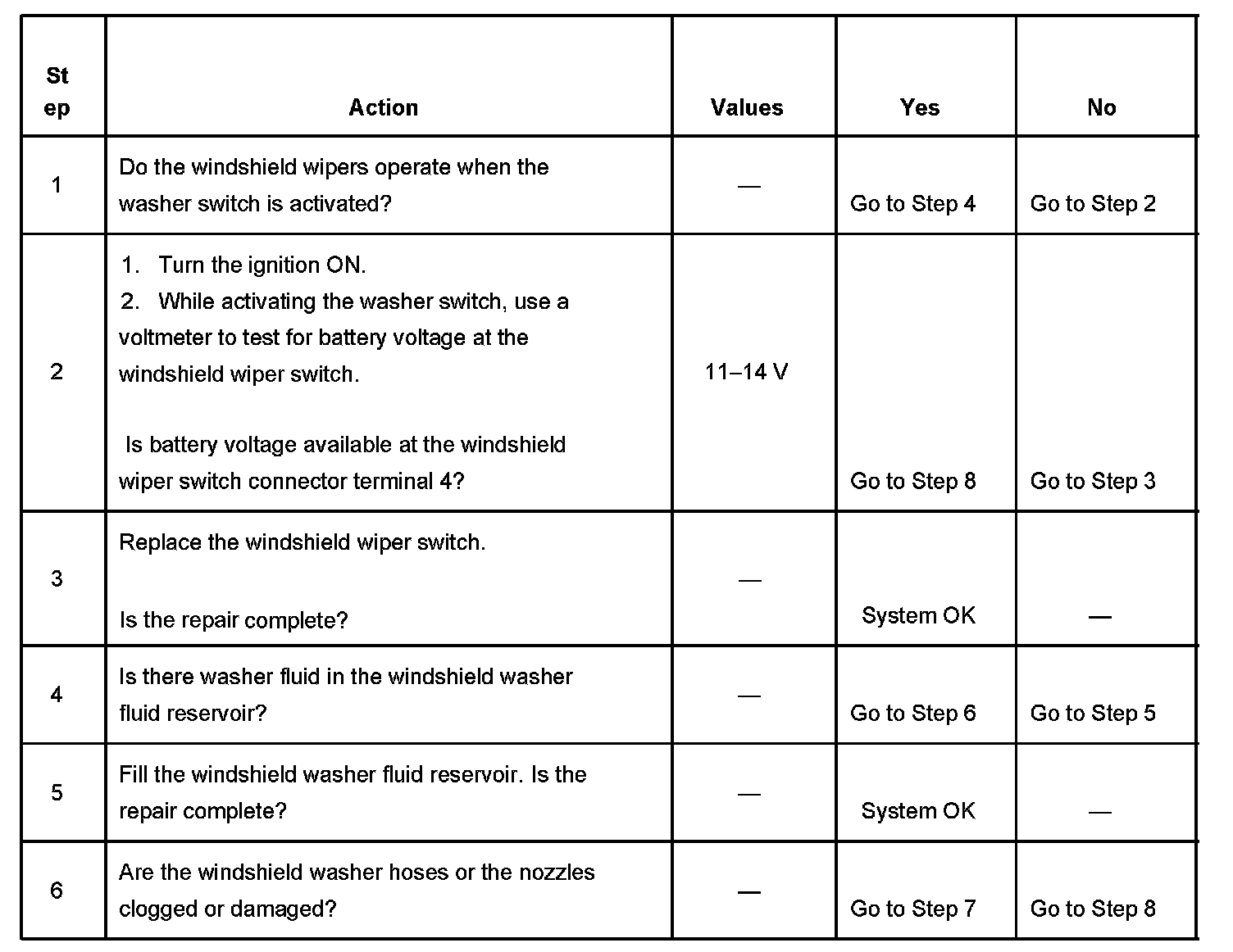 Washer Inoperative - Front