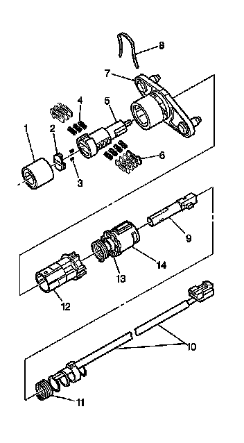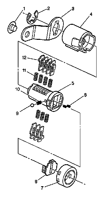 12. Check for correct loading of the tumblers (12) by inserting the key into cylinder (5). All of the tumblers should be flush with the lock cylinder.
