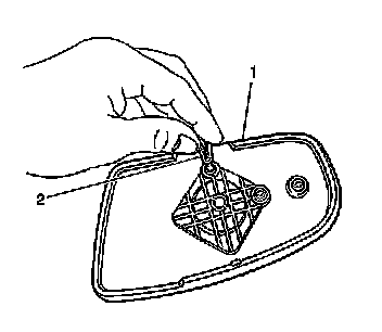 1. Insert the J 38778 (or equivalent) between the mirror backing plate and the housing.
