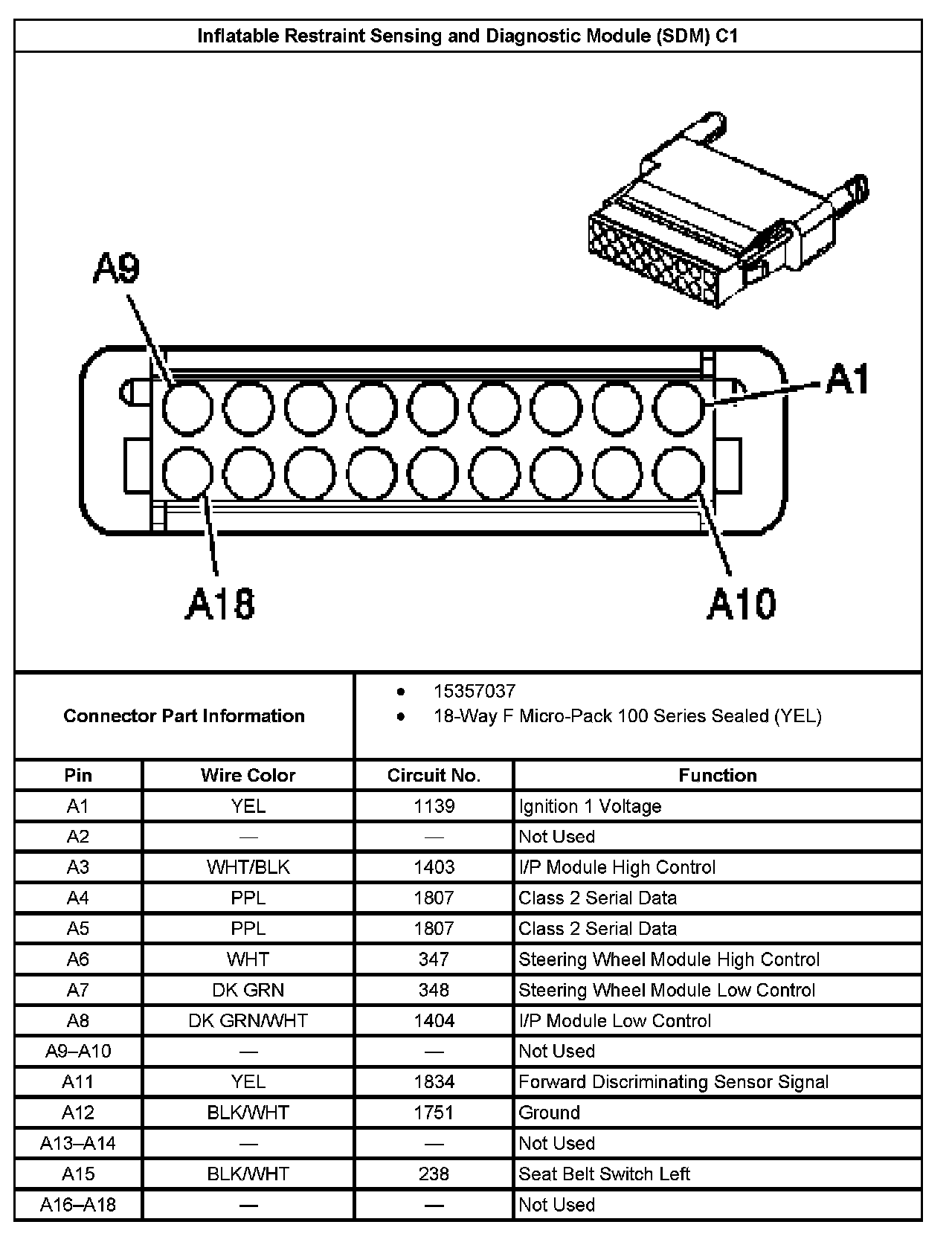 Inflatable Restraint Sensing And Diagnostic Module (SDM) C1: