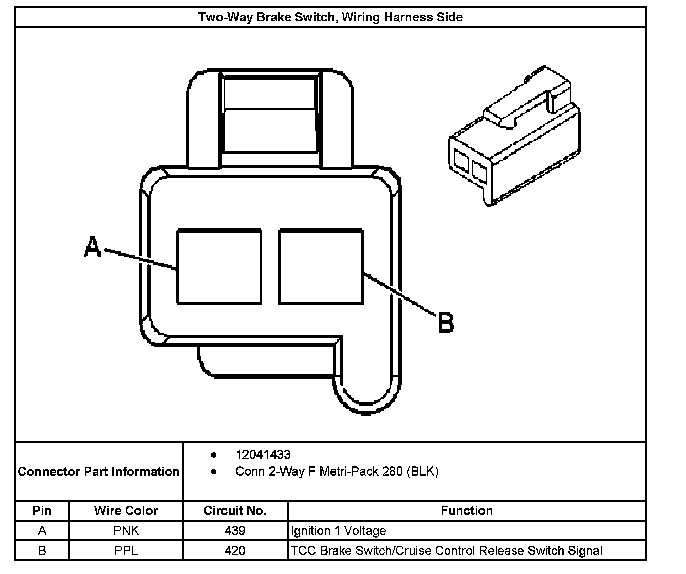 Two-Way Brake Switch, Wiring Harness Side: