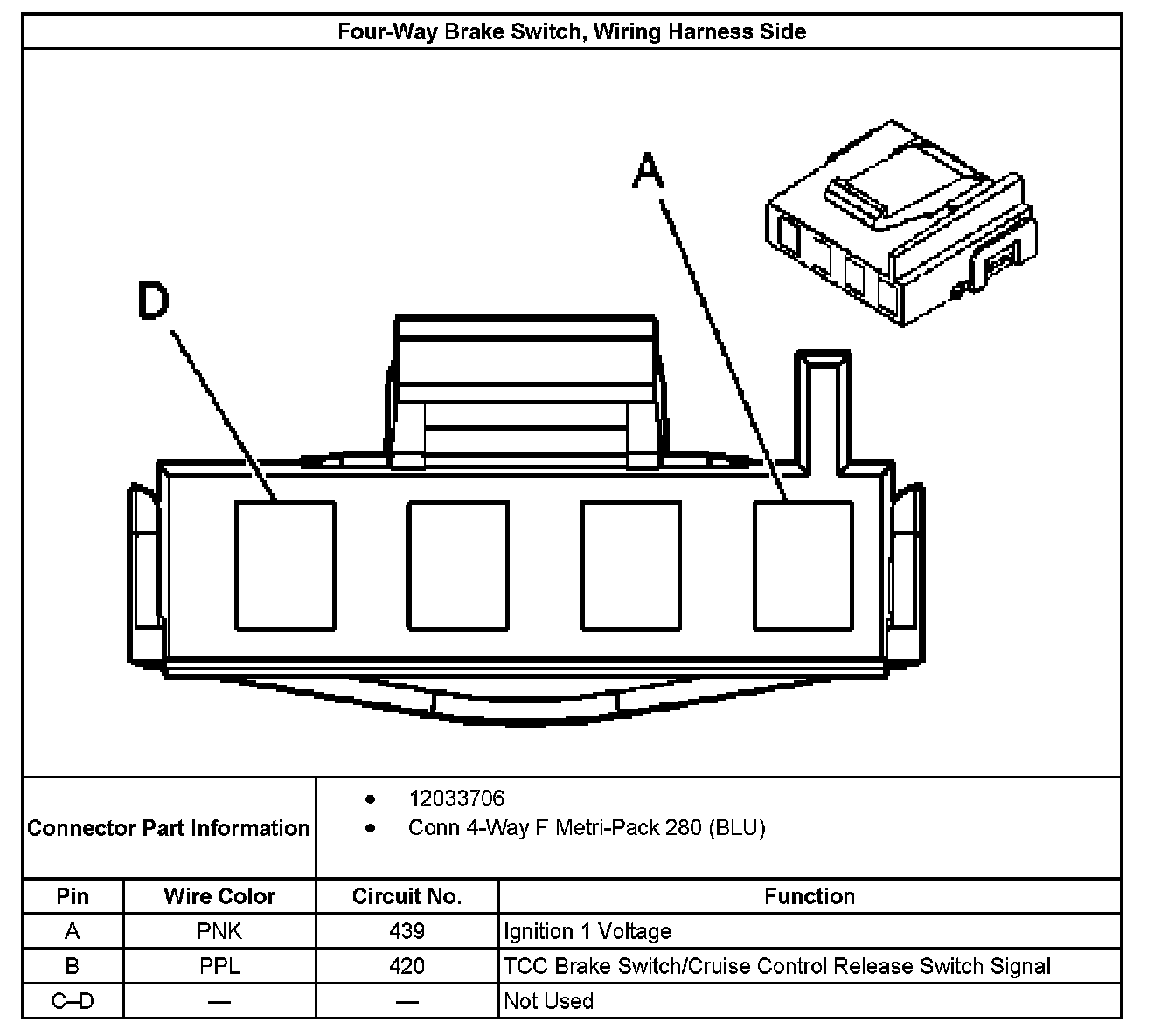 Four-Way Brake Switch, Wiring Harness Side: