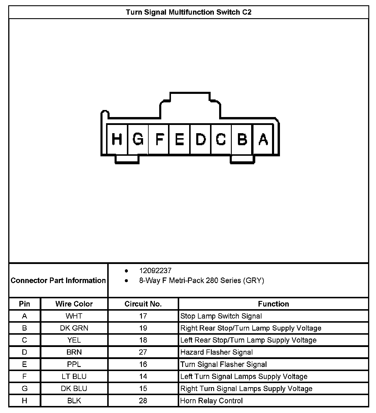 Turn Signal Multifunction Switch C2: