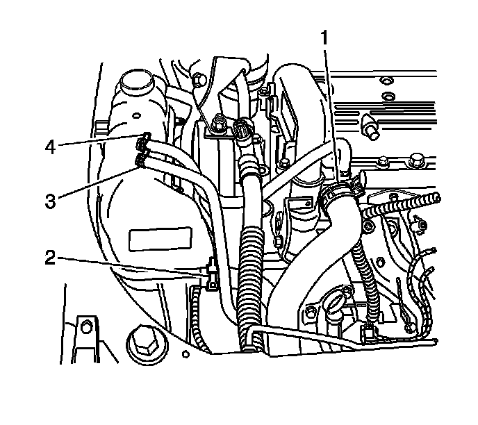 4. Use the J 38185 in order to install the surge tank hose (3) to the radiator.