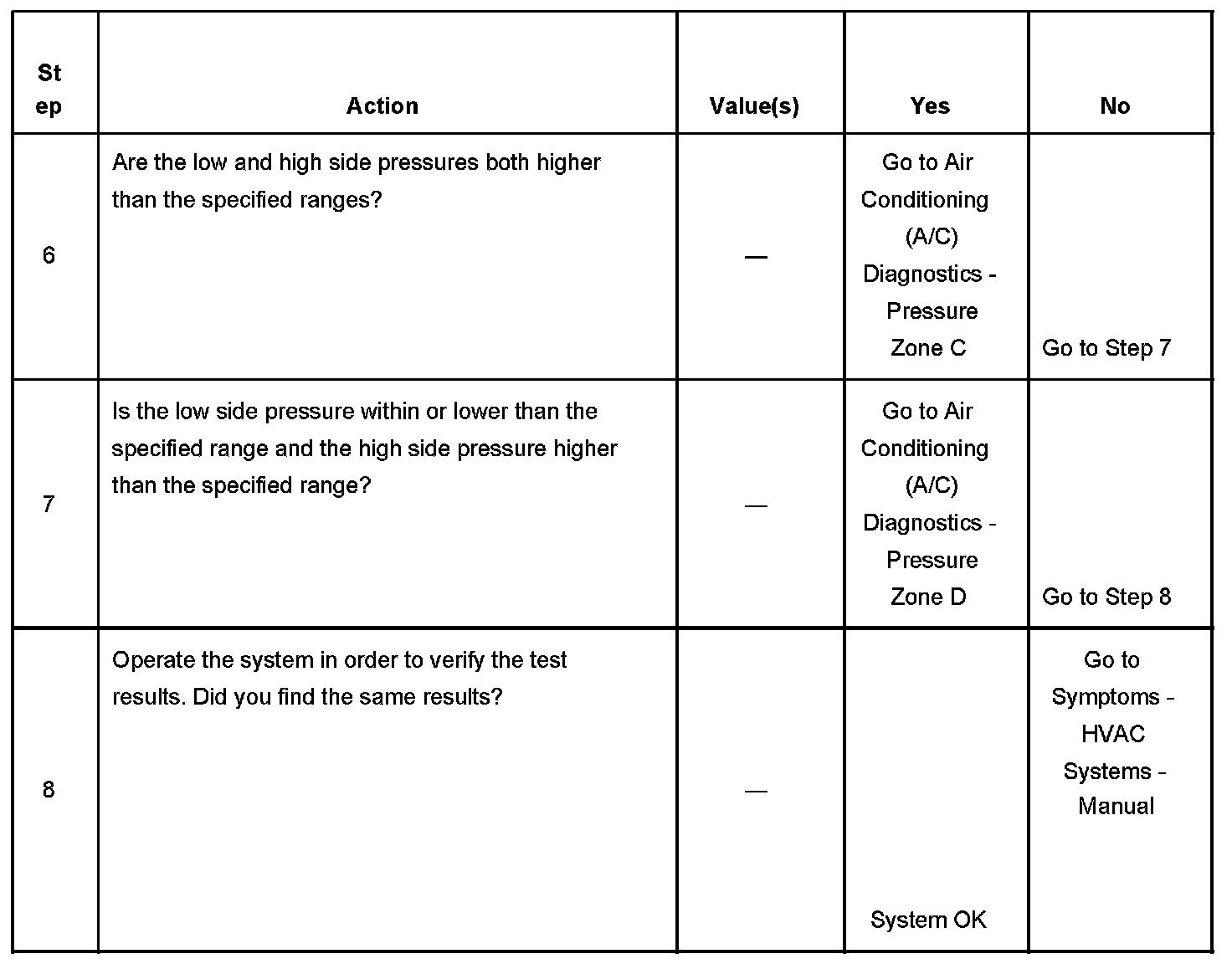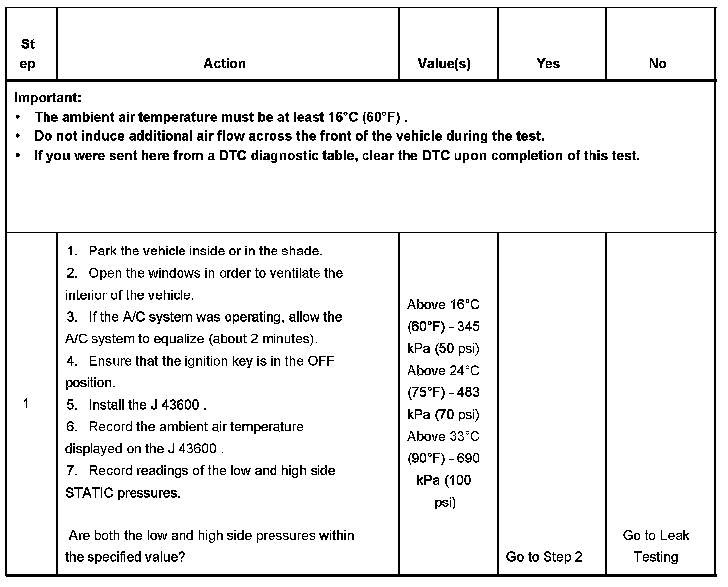 1. This step determines if the A/C system has at least the minimum refrigerant charge required to operate the system without damage.