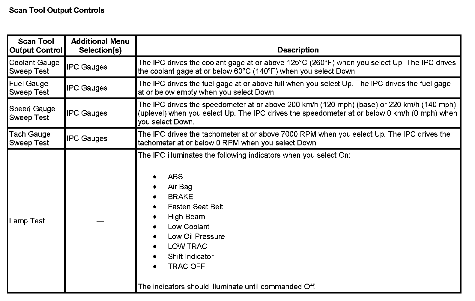 Scan Tool Output Controls: