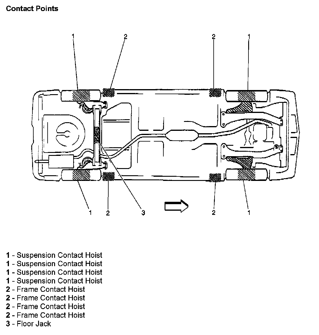 - To avoid any vehicle damage, serious personal injury or death when major components are removed from the vehicle and the vehicle is supported by a hoist, support the vehicle with jack stands at the opposite end from which the components are being removed.