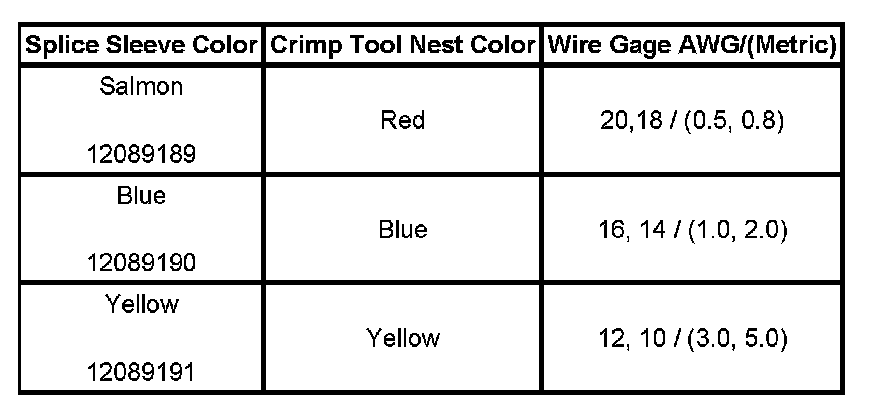 5. Select the proper duraseal splice sleeve (2) and the required crimp nest tool, refer to the Crimp and Seal Splice Table.