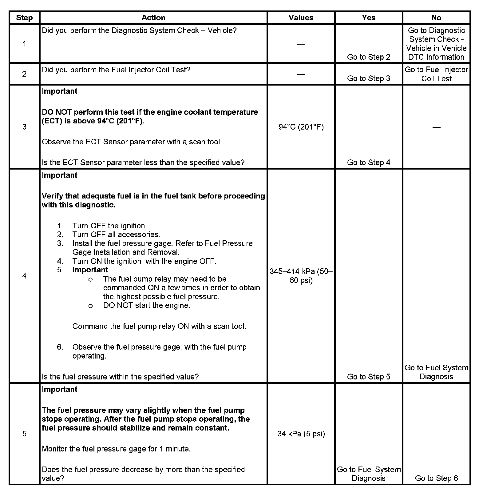3. The engine coolant temperature (ECT) must be below the operating temperature in order to avoid irregular fuel pressure readings due to hot soak fuel boiling.