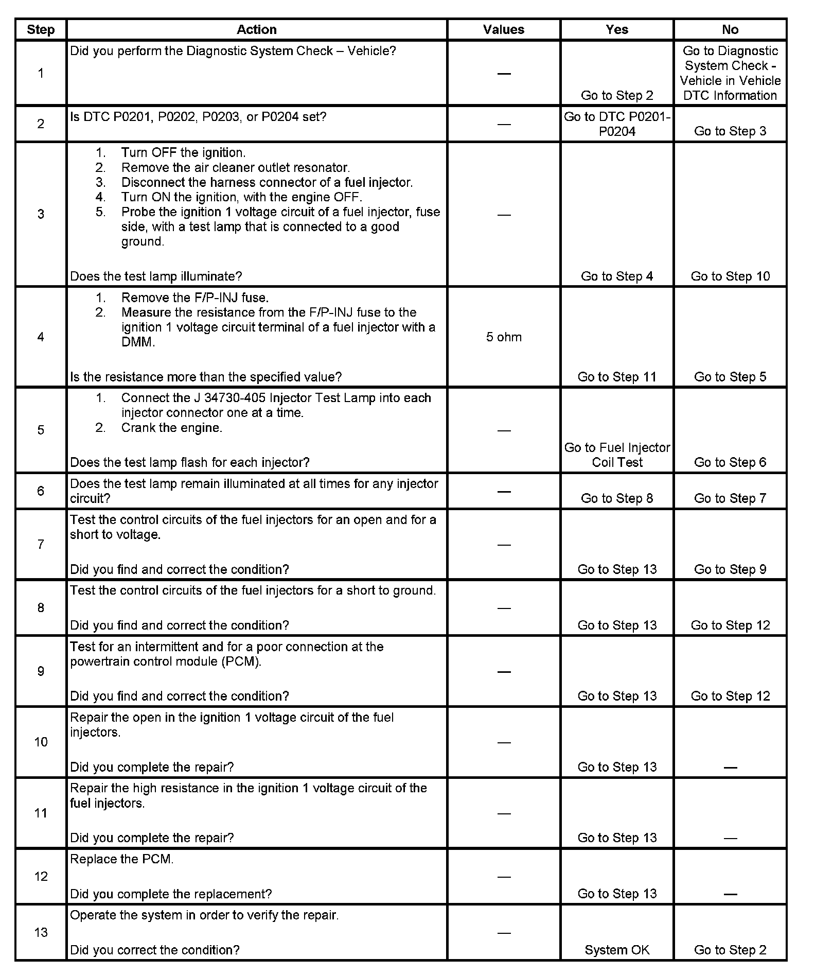 - Performing the Fuel Injector Coil Test may help isolate an intermittent condition. Refer to Fuel Injector Coil Test. Component Tests and General Diagnostics